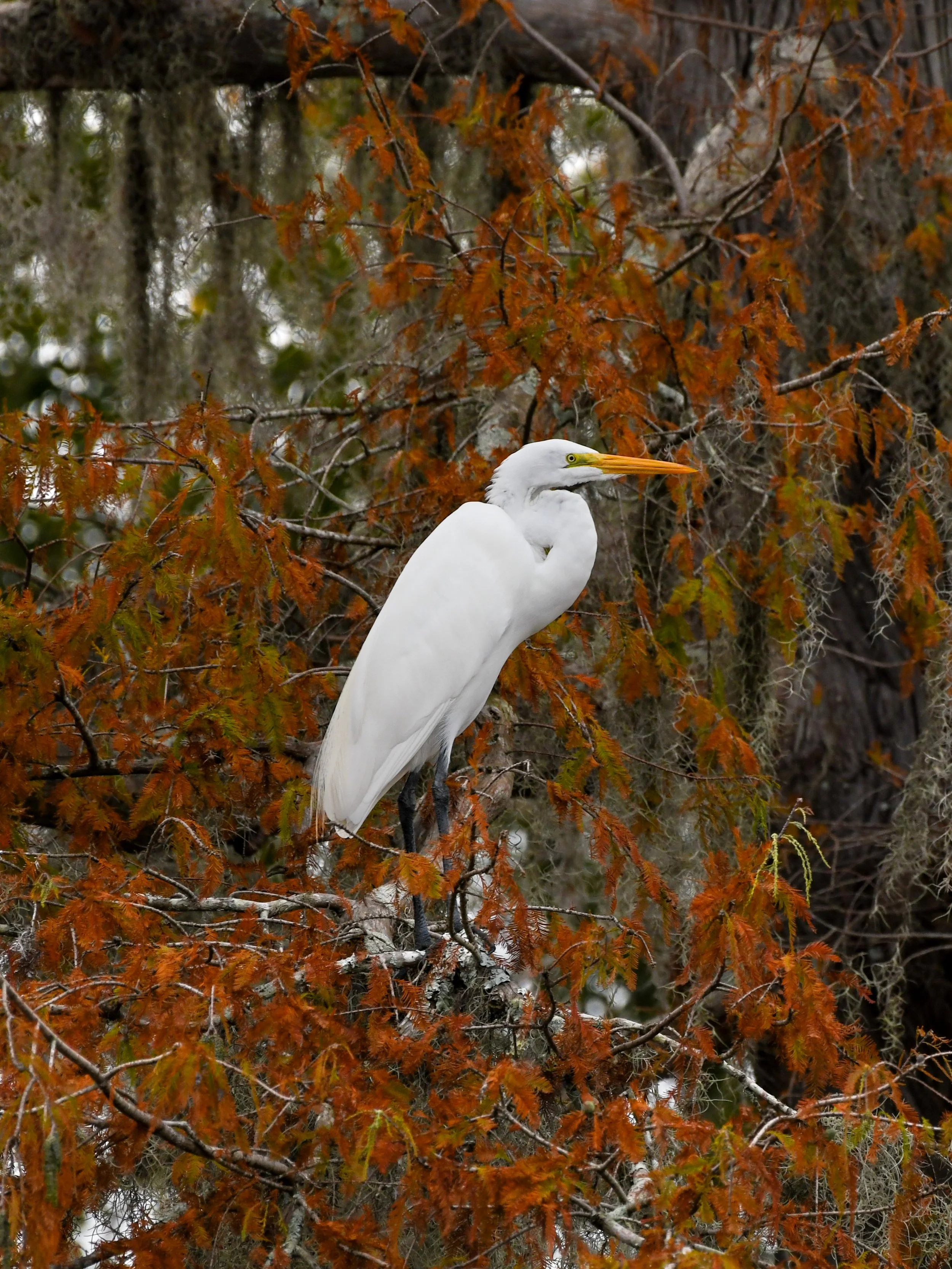Great Egret on Bald Cypress - West Fork Calcasieu River