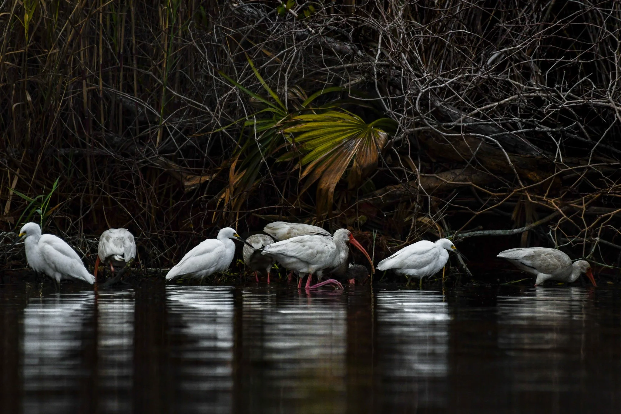 White Ibis with Snow Egret - Calcasieu River